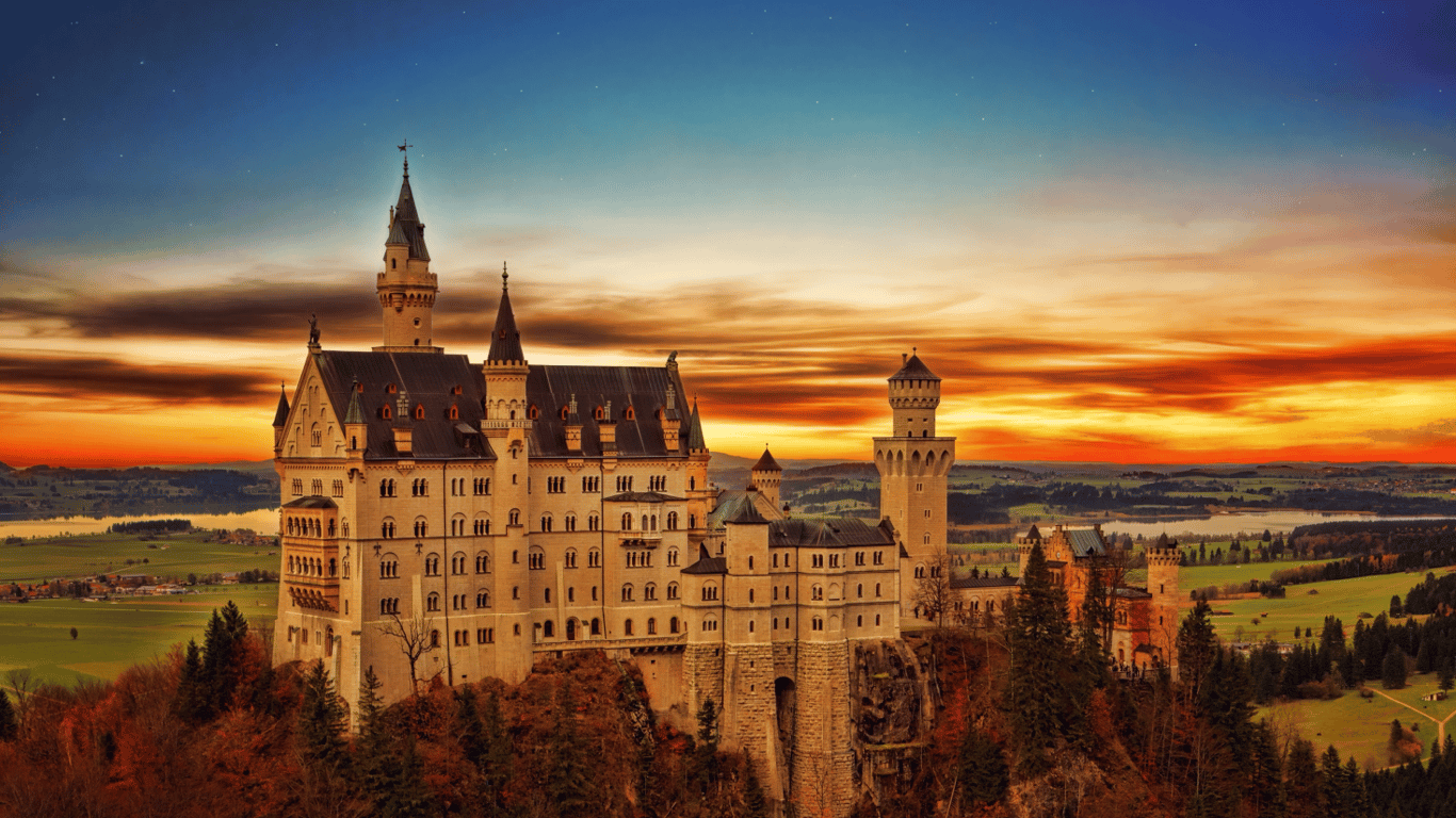 Этот дворец XIX века построен по заказу короля Баварии Людвига II в честь композитора Рихарда Вагнера. Он расположен в живописном предгорье Альп. Ежегодно его посещает более миллиона туристов со всех уголков мира. Именно им вдохновлялись создатели замка Спящей красавицы киностудии Disney.